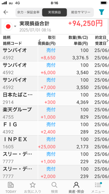 ①サンバイオさんデイトレ、②+5〜10%到達のNISA銘柄売却、③マトさん躍進と旧NISA分の売却