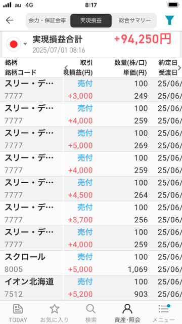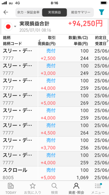 ①は寄り付きだけ上げてその後落とすことがわかってたので初めは上手く行ってたのですか、調子乗った(+5〜8000円で指すべきところを+13000円指した)結果、現在大きな含み損抱えてます。。